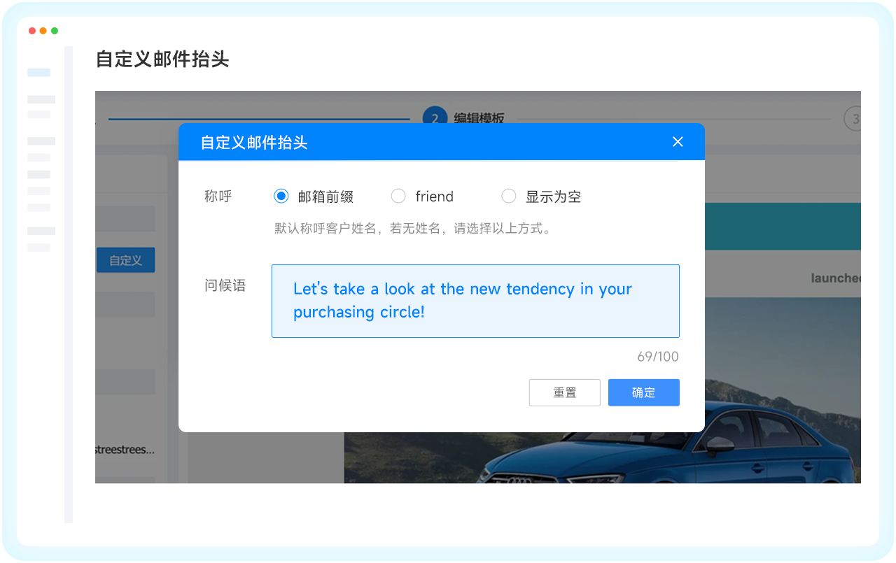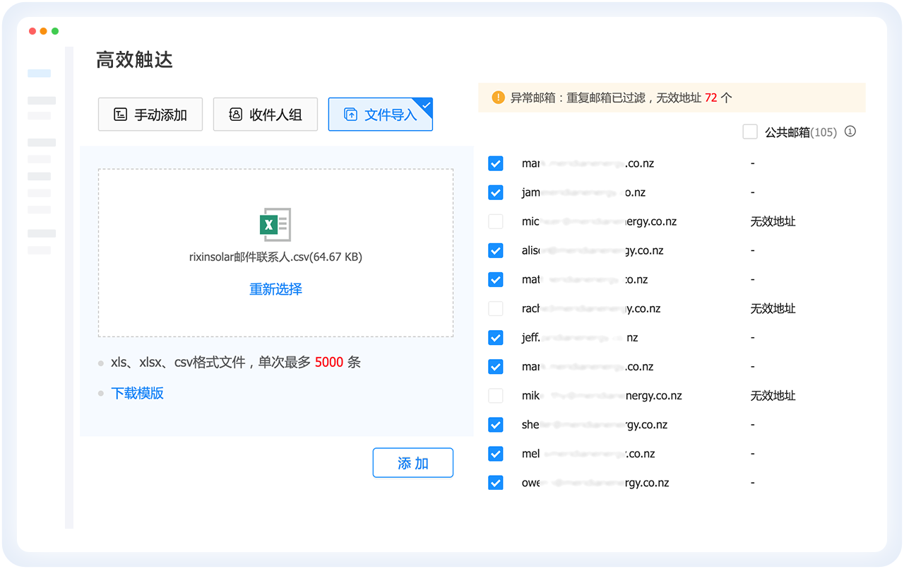行业独有,海外服务器+动态IP地址,90%高抵达率,内置多种国际化邮件营销模板,支持查看与分析打开率、点击率等数据,助力营销策略优化。